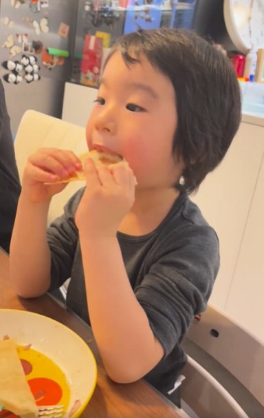 谢楠在微博晒出一段儿子们的视频,视频中的“吴老二”边吃饭边与哥...