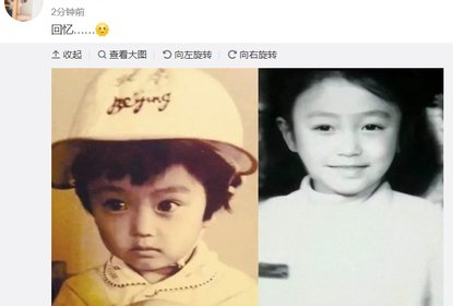 秦岚晒出儿时童年照,照片中的小秦岚戴着印有“北京”的小帽子,大...