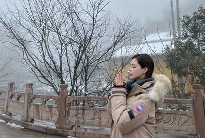 张颖颖晒出一张在寺庙祈福的照片画面中,张颖颖身穿卡其色羽绒服...