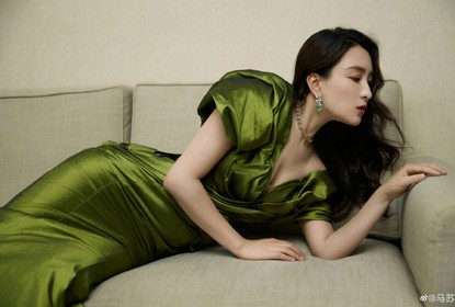 马苏在微博晒41岁生日写真照,她穿绿色深V修身连衣裙,秀傲人曲...