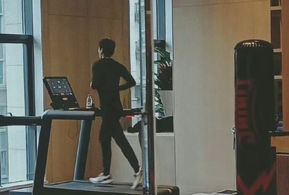 有网友晒出偶遇李易峰在健身房锻炼的照片。照片中,他一身黑衣在...