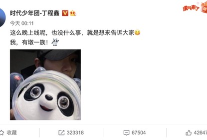 丁程鑫微博晒和冰墩墩合照,配文:“这么晚上线呢,也没什么事,...