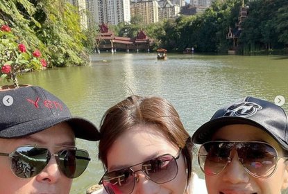 甄子丹在社交平台上晒出自己带着妻子汪诗诗和女儿甄济如旅游的照...