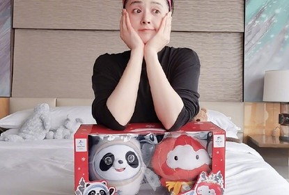 蒋欣在微博晒出一组和冰墩墩雪容融的照片,配文“看图不说话!”。...