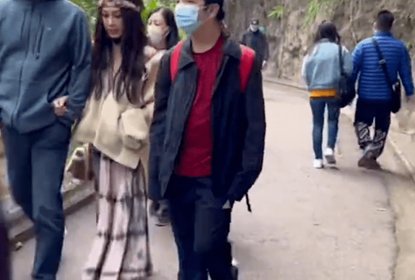 有网友释出偶遇温碧霞一家三口出行爬山的视频,温碧霞和老公手挽...