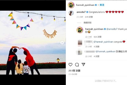 昆凌在社交平台晒照宣布怀三胎的消息。许玮甯在评论区留言祝贺:...