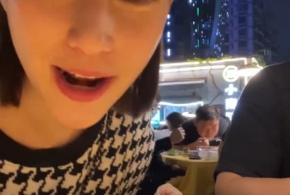 何超莲分享和男友窦骁一起吃大排档的视频。视频中,何超莲认真地...