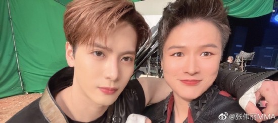 张伟丽在微博分享与王嘉尔的自拍合照,先是配文“网友奔现”,被提...