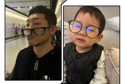 许昕晒出和儿子同款留影,并配文:“复制粘贴”。照片中,许昕和儿...