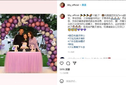 郭可盈在社交平台晒出她和丈夫林文龙为女儿Tania举办的12岁生日...