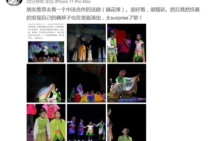 刘烨发微博晒出一对儿女诺一、霓娜参演话剧的照片,表示:“朋友...