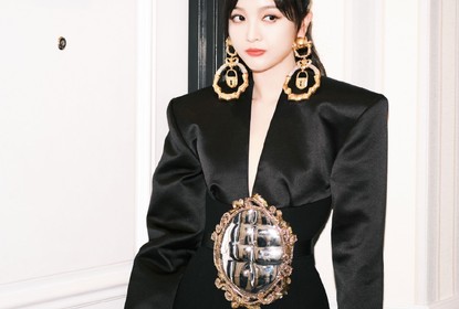 吴宣仪最新写真大片出炉。照片中,她身穿黑色深V西装,搭配金色...