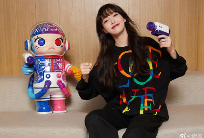 唐嫣在社交软件公开一组居家拍摄的照片,手拿玩具面对镜头,幸福...