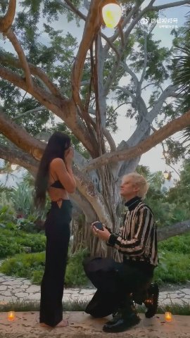 梅根·福克斯和MachineGunKelly订婚,求婚现场画面曝光。据悉,两...