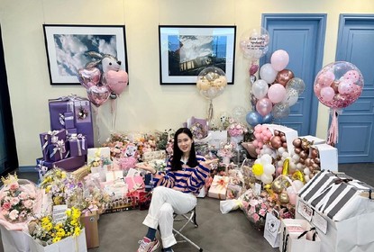 韩国演员孙艺珍在社交平台分享庆祝40岁生日的画面,并表示收到了...