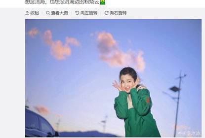 李冰冰在微博晒出在洱海与天空中粉烧云的合照,发文感叹:“想念...