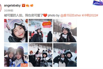 Angelababy在微博晒出虞书欣帮自己拍的照片,配文:“被可爱的人...