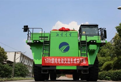 搭载宁德时代电池的全球首台120吨级纯电动交流传动矿用自卸车在...