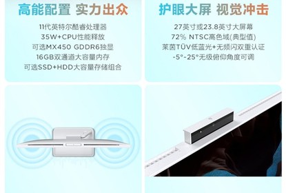 联想AIO520酷睿版一体机配备23.8英寸或27英寸大屏幕,具备72%NTS...