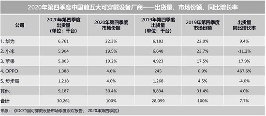 IDC《中国可穿戴设备市场季度跟踪报告,2020年第四季度》显...