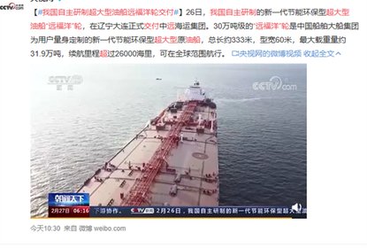 据央视网报道,2月26日,我国自主研制的新一代节能环保型超大型...