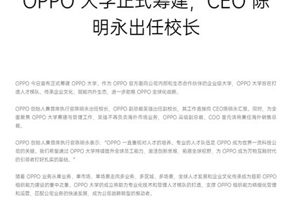 通过OPPO官网了解到,OPPO宣布正式筹建OPPO大学。据悉,OPPO大学...