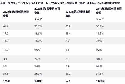 IDC日本发布了2020年第三季度可穿戴设备出货情况。第三季度...