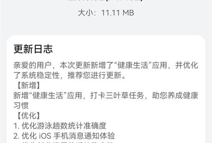 根据更新日志,此次更新优化了iOS系统手机消息通知功能的使用体...
