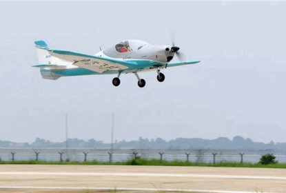湖北首款全碳纤维复合材料轻型飞机——卓尔ZA800飞机在荆门漳河机...