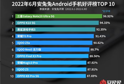 安兔兔公布了6月Android手机好评榜,搭载天玑8000-Max芯片的OPPO...