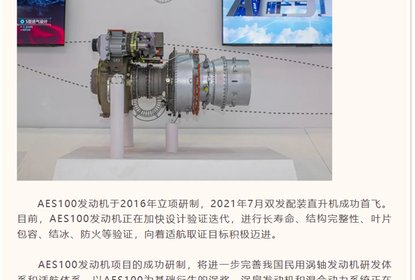 该公司自主研制的1000kW级先进民用涡轴发动机AES100首家先锋用户...