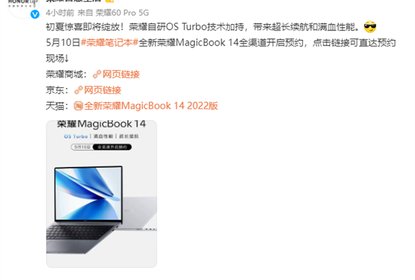 荣耀智慧生活官方宣布,首款搭载MagicOSforWindows系统,并采用O...