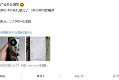 去年一款名为鼎桥M40的手机入网,外观神似华为Mate40系列,该机...