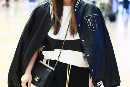 北京,演员小李琳素颜现身机场。她头戴黑色渔夫帽,身穿黑色穿棒...
