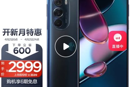 摩托罗拉京东自营旗舰店显示,摩托罗拉edgeX30顶配版降至2999元...