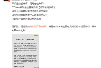 ealme负总裁徐起在微博发布长文,宣布GTNeo在推出一年后,累积用...