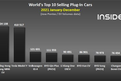 据EV-Volumes的数据显示,2021年全球新能源车型累计销量近650万...