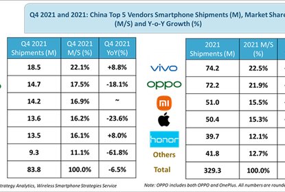 权威市调机构StrategyAnalytics的最新研究显示,2021年全年中国...