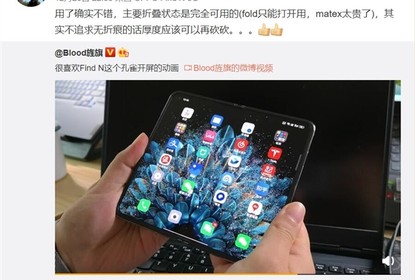 微博CEO王高飞评价OPPOFindN,表示“用了确实不错,折叠状态下也...