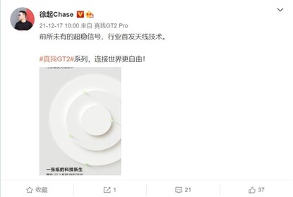 徐起表示,realmeGT2Pro将会全球首发全新天线技术,带给消费者前...