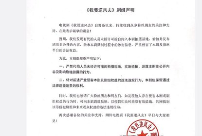 《我要逆风去》剧组通过官微发声,称发现有代拍人员未经许可擅自...