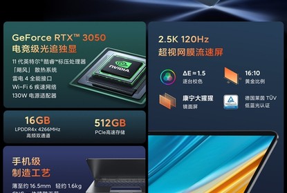 核心配置上,小米笔记本ProX14采用2.5K120Hz超视网膜流速屏,搭...