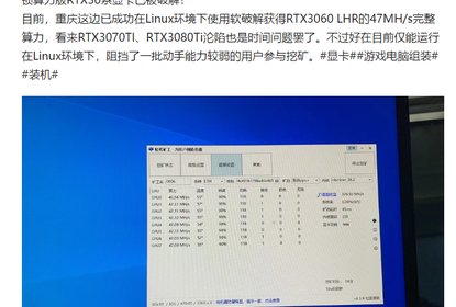 NVIDIA此前推出了RTX30LHR版显卡,从底层限制了挖矿性能,LHR就...