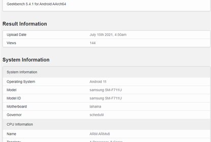三星GalaxyZFlip3在Geekbench跑分平台现身。从跑分测试可知,该...