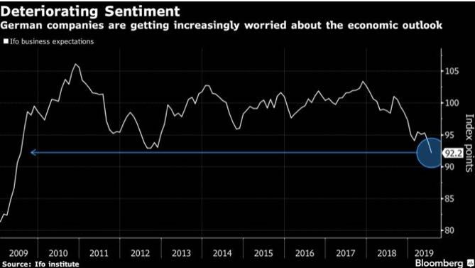 德国企业情绪指数已经降低到了2009年金融危机时期。