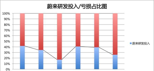 但蔚来财务数据的统计分析呈现出了不同结论。蔚来花在研发上花的钱,只占这3年半总亏损的25.87%。最高的年份刚过40%,最低的年份只有不到20%。不管如何,没能达到李斌说的接近50%。