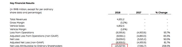 2018年蔚来亏损233.28亿元,高达特斯拉当年亏损69亿元的338%。另一个则是最近这起风波的导火索,2019年二季度,蔚来亏损33.14亿元,比特斯拉二季度的29亿元亏损多出14%。