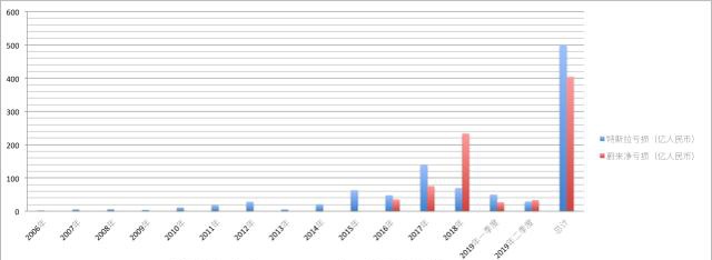 特斯拉从成立至今的14年间(2005年数据缺失),总亏损为70.3亿美元,折合人民币近500亿元(按2019年9月汇率计算)。蔚来从成立至今的3年半间,总亏损为403亿元人民币。蔚来还要再多亏掉100亿元,才能赶上特斯拉。