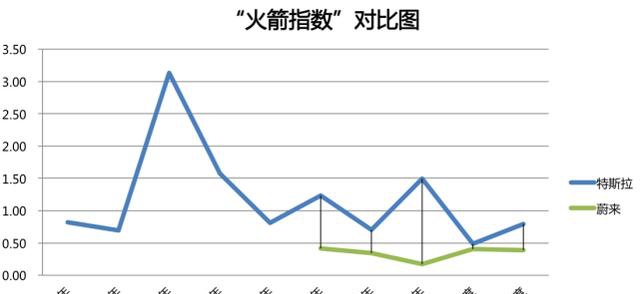 火箭指数的最低点也出现在其中。2018年蔚来的火箭指数是0.17,仅为2017年的一半。
