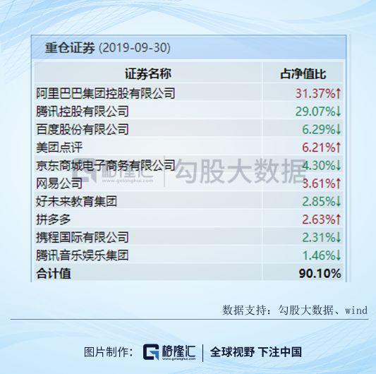 其实在国内也有一些追踪海外中概股的被动指数ETF,比如说中概互联(513050),截至2019年9月30日,中概互联阿里巴巴的占比为31.37%,腾讯为29.07%,百度,美团,京东,网易,拼多多分别为6.29%,6.21%,4.30%,3.61%和2.63%。